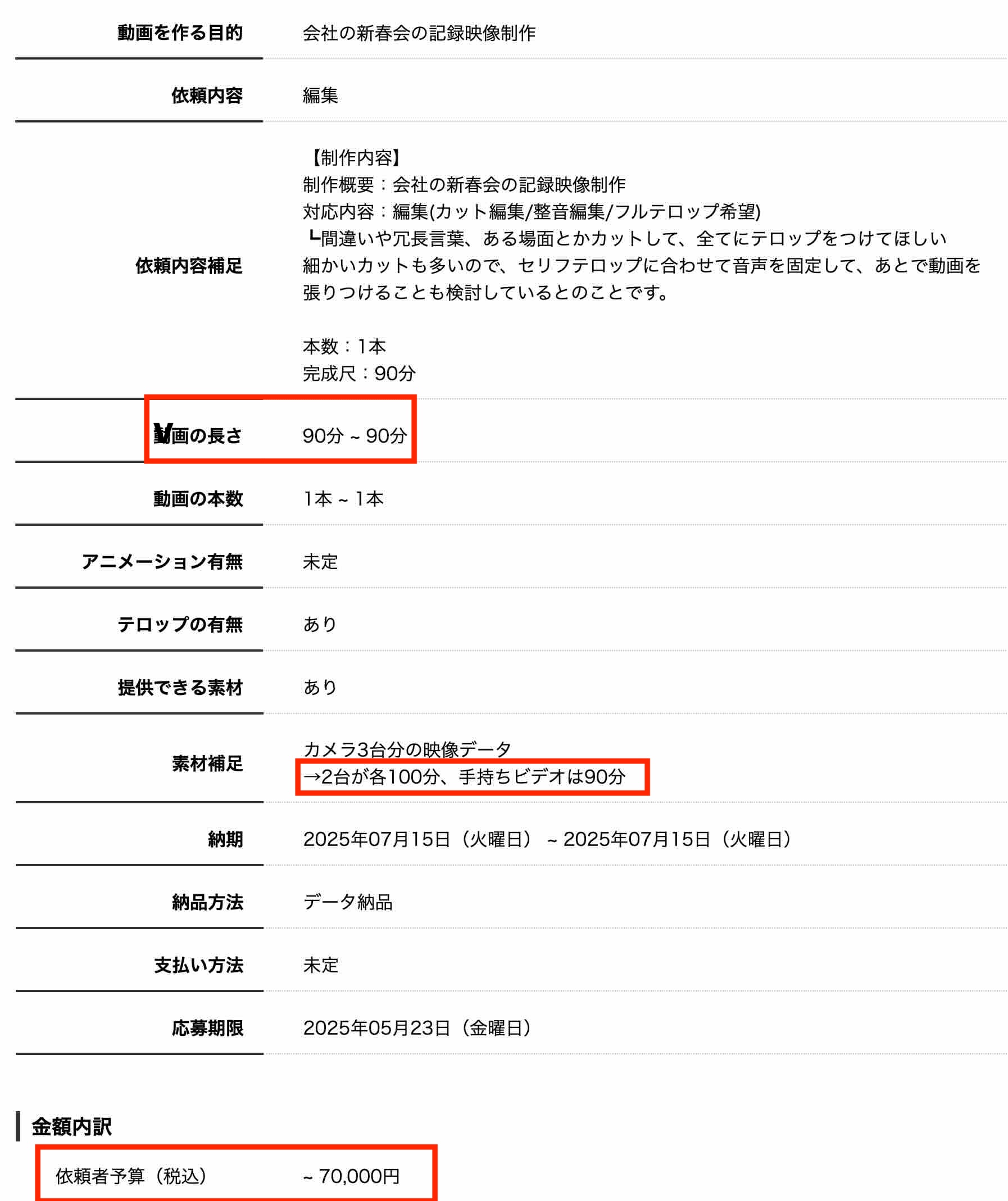 納品期日がどうかはわからないけど…これを7万円でやれって皆さんやれそうですか(笑)