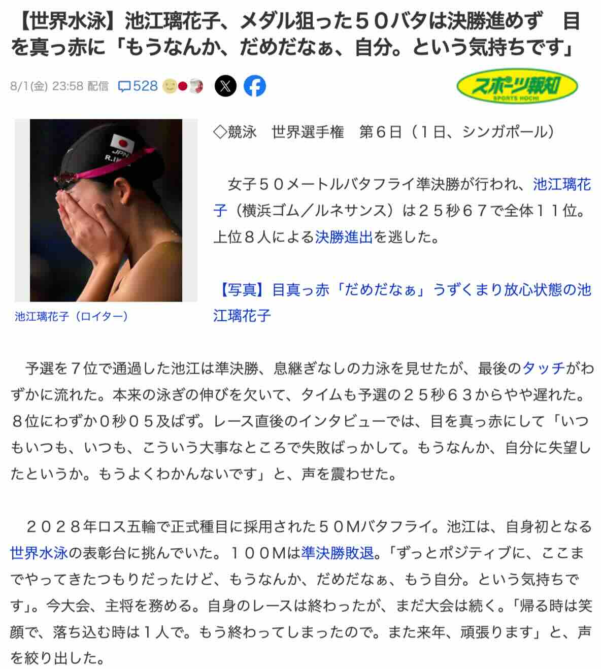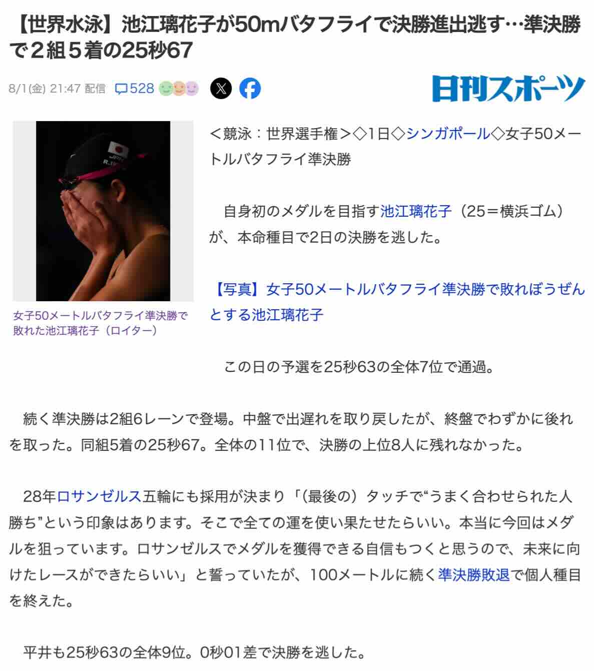 まるで、池江璃花子のダメっぷりを
